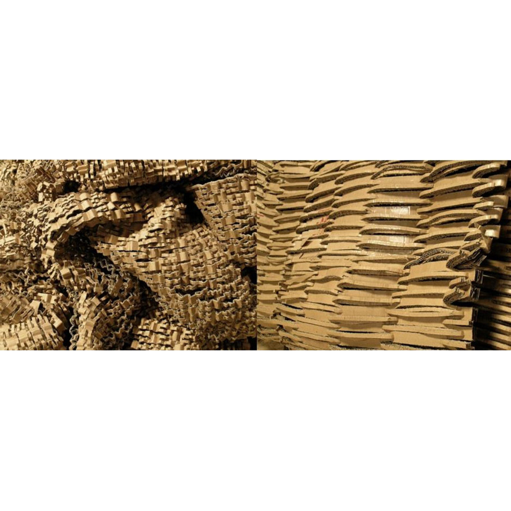 The ecoVoid Mega can process low and medium hardness corrugated cardboard, paper, and solid cardboard. Max. thickness for corrugated cardboard is 20 mm, and for solid cardboard or paper, it's up to 3 sheets of 0.5mm thickness at the same time. Please note: do not process corrugated cardboard together with paper or solid cardboard.