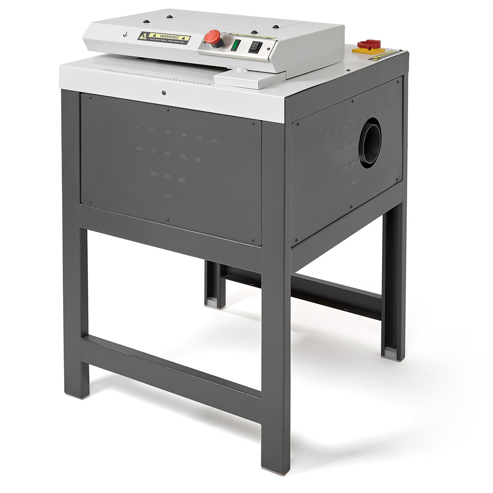 The EcoShred ES320Si Cabinet Vacuum Ready Matting Shredder comes with a provision for connecting a vacuum dust extraction system (sold separately), which effectively reduces dust in dust-sensitive work environments and minimizes maintenance requirements.
