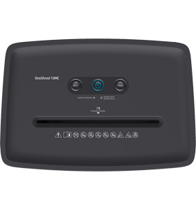 It features a paper overload visual indicator on the top of the machine and also an overheat light when the 10MC has been continuously shredding for 10 minutes.