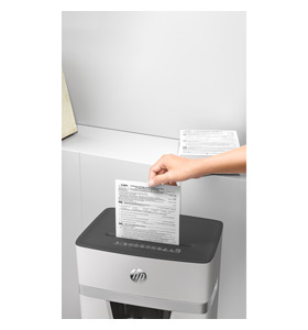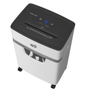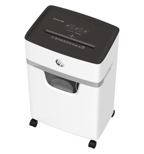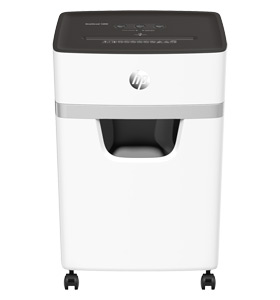 The HP OneShred 10MC is an 10 sheet Micro cut shredder that also accepts staples, paperclips and credit cards into a 220mm (A4) Entry Throat. It will shred paper into 2*15mm (P-5) pieces into a 20 litre bin.