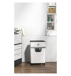 This shredder also makes use of HP's anti jam technology and will auto reverse if too much paper is inserted and features castors for ease of movement.