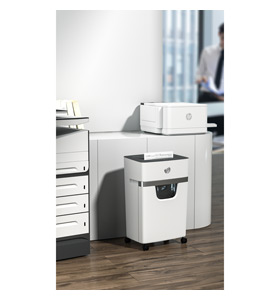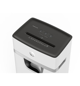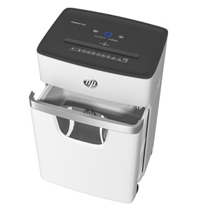 The HP OneShred 15CC is an 15 sheet Cross cut shredder that also accepts staples, paperclips and credit cards into a 220mm (A4) Entry Throat. It will shred paper into 4*35mm (P-4) pieces into a 20 litre bin.