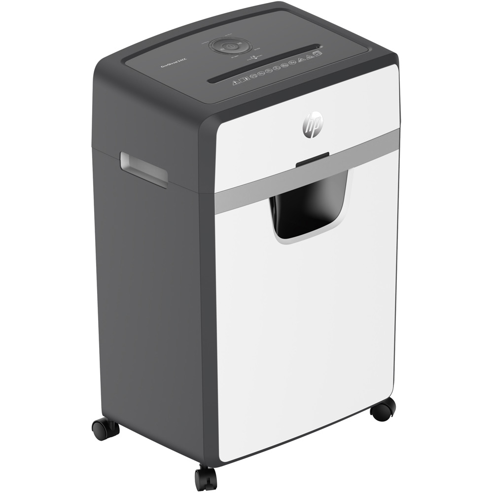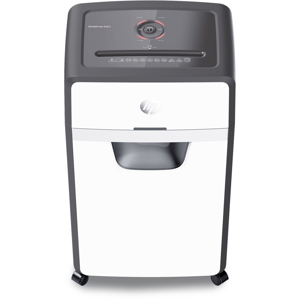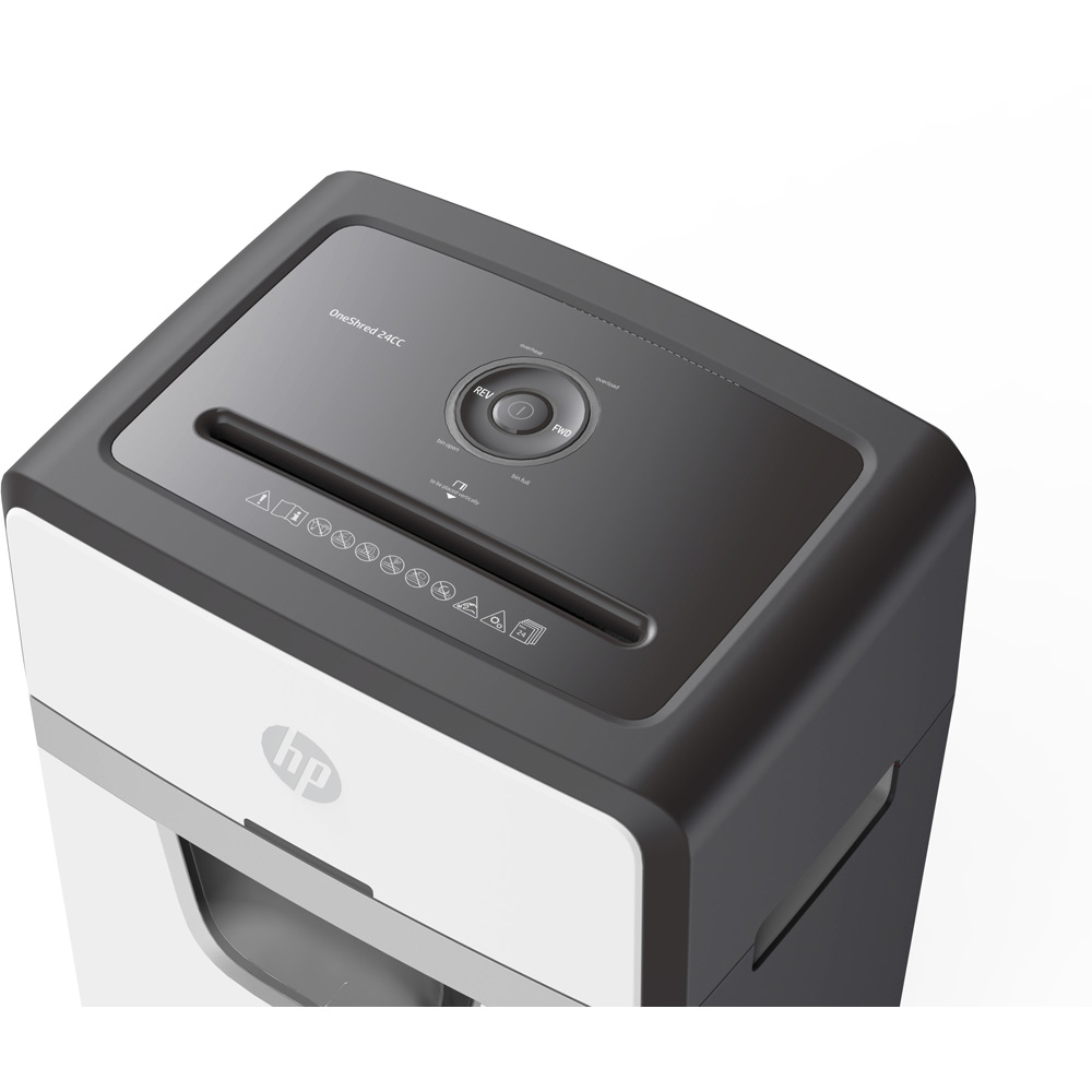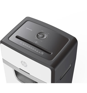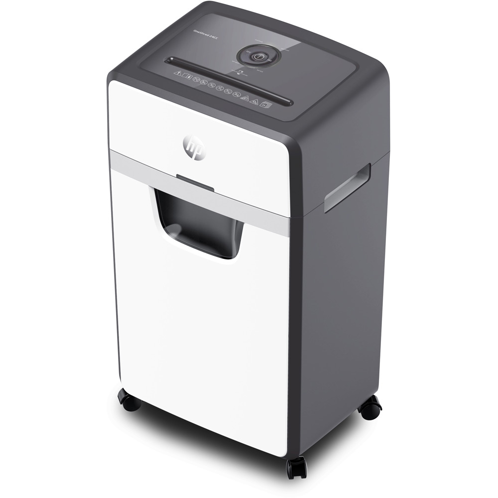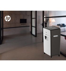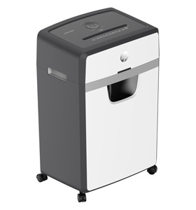 The HP OneShred 24CC is an 24 sheet Cross cut shredder that also accepts staples, paperclips and credit cards into a 220mm (A4) Entry Throat. It will shred paper into 4*35mm (P-4) pieces into a 30 litre bin.