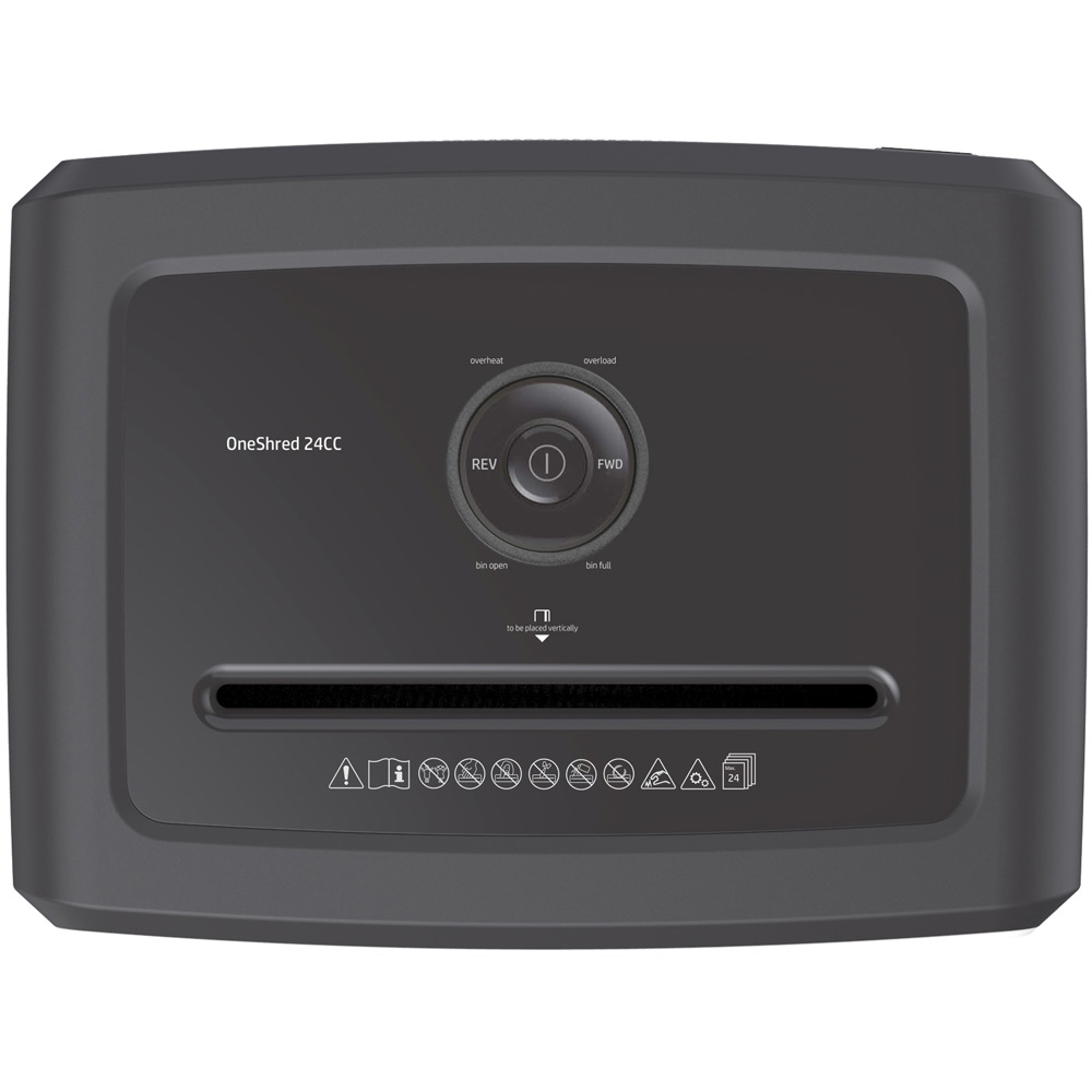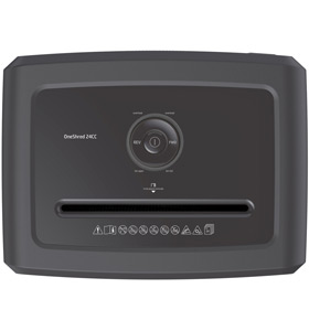 It features a paper overload visual indicator on the top of the machine and also an overheat light when the 24CC has been continuously shredding for 30 minutes.