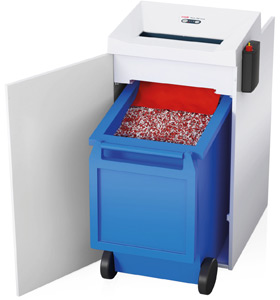 Extra large bin space designed to accommodate a 240L wheelie bin as a convenient alternative to using a shredder bin bag allowing quick bin changeover and an easy method to remove shredded waste for disposal.
