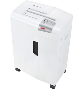 This document shredder on rollers ensures data security in the workplace. The separate CD cutting unit easily shreds CDs and DVDs, credit and store cards. The shredded material is sorted into the separate CD waste container and you can dispose of it separately. The LED display enables you to easily view the operating state of the machine. An integrated light barrier starts the device automatically and switches it off again after the paper feed ends. The automatic reverse rectifies paper jams and ensures smooth operation. The level of the waste container is always visible through the inspection window, making timely emptying possible. The waste container is easy to remove and empty.