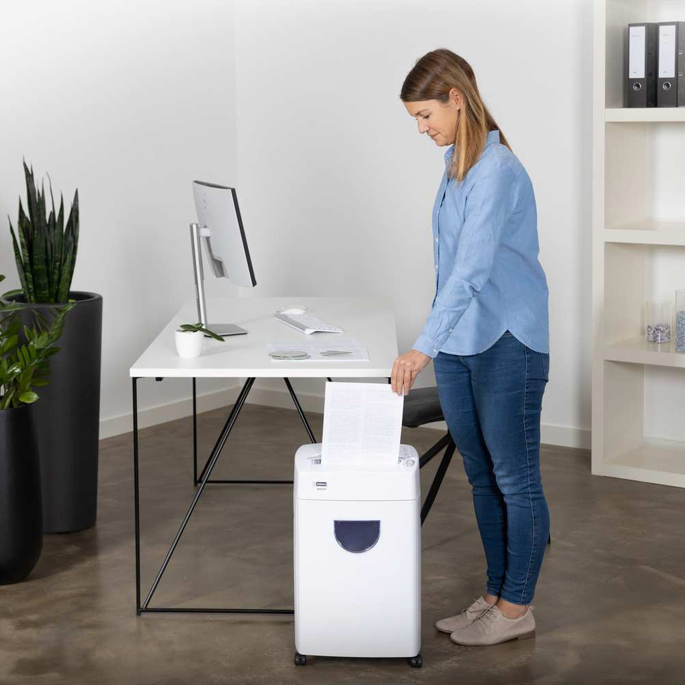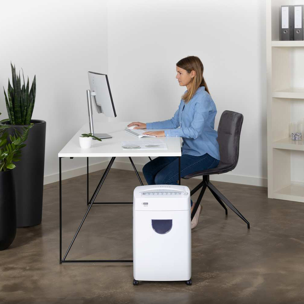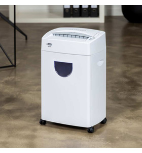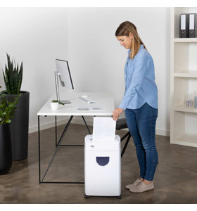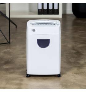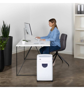 For convenience, the 1500 CP4 features a 22-litre pull-out collection bin with a viewing window that holds up to 450 sheets of shredded material, making disposal easy and efficient. Additionally, the unit sits on lockable castors, making it easy to move and secure in place in any office setting.