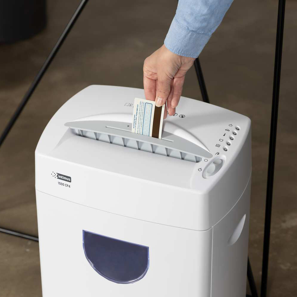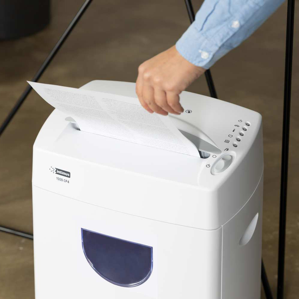Constructed to meet the highest quality and safety standards, the Intimus 1500 CP4 is a reliable choice for any home or office needing efficient, secure, and easy-to-use shredding solutions.