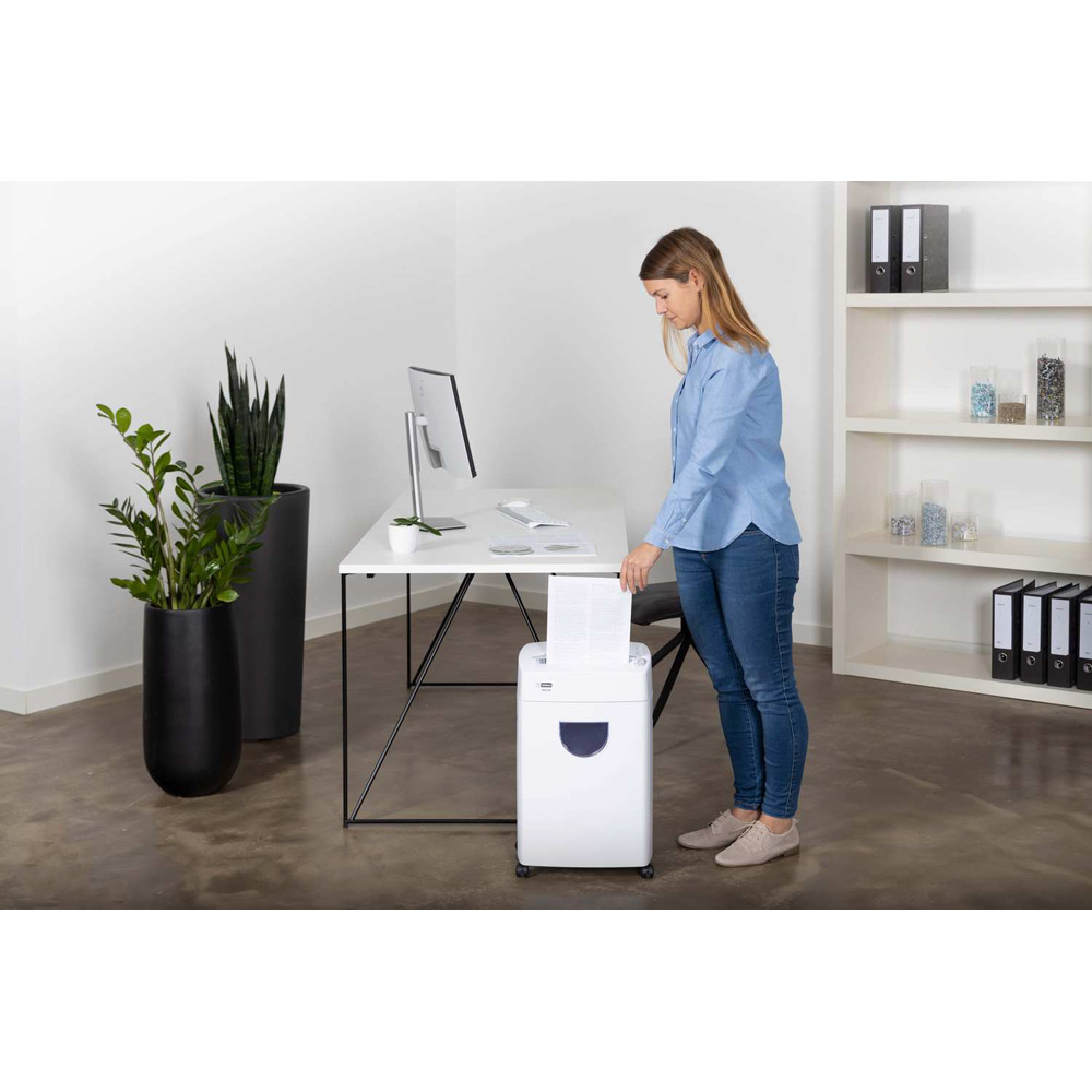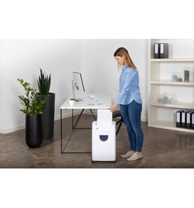 Despite its small footprint, the shredder includes a 22-litre bin for easy disposal of shredded material. It includes castors for smooth mobility around the workspace and weighs 8.5 kg. The machine is covered by a 2-year warranty, with a 10-year warranty on the cutting cylinder.