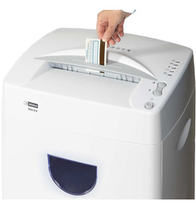 - Shreds Paper, Staples, Paperclips, CDs/DVDs & Credit Cards