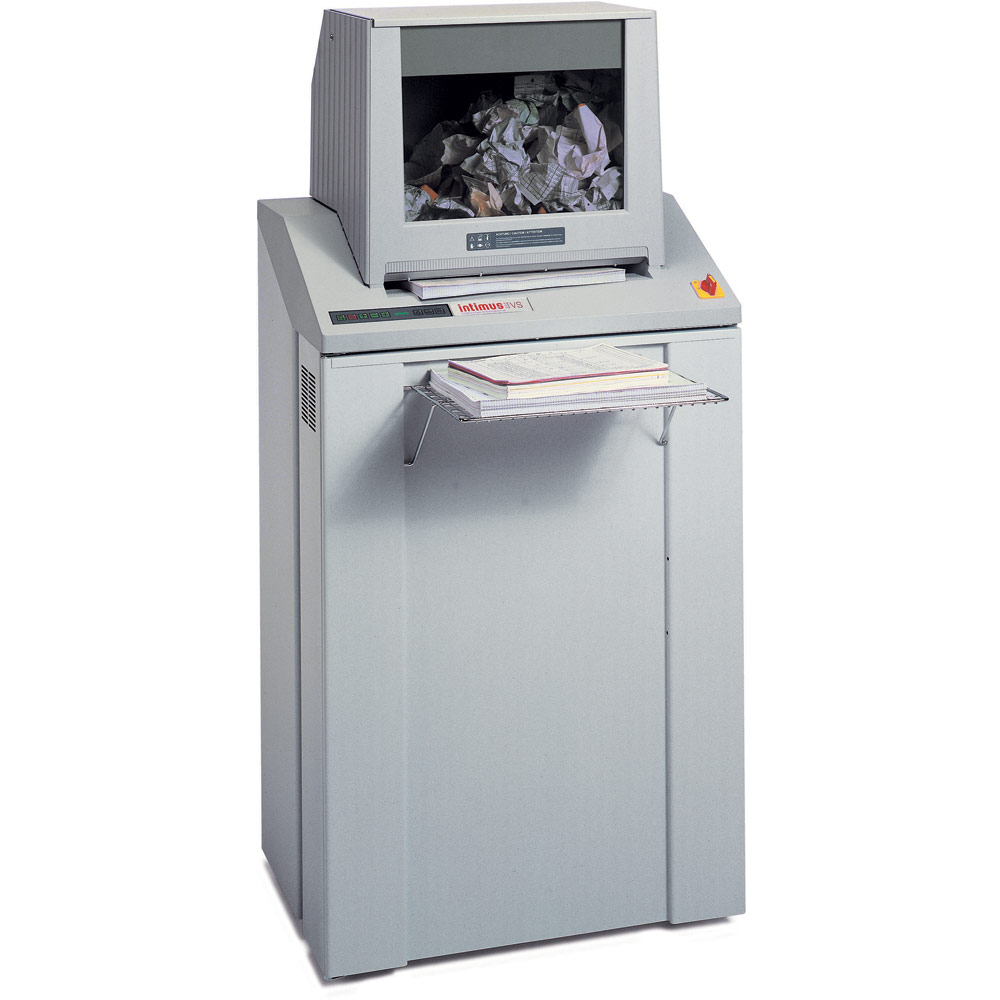 The Intimus H200 VS is a Cross Cut Departmental Shredder designed for the destruction of secure waste, ideally suited to be sited on every floor of office blocks. Perfect for shredding crumpled paper, with paddles to push waste through the machine. Runs on single phase/230volt power and delivers enormous power. Variable speed motor runs faster with less loads and slows down when shredding thicker files.