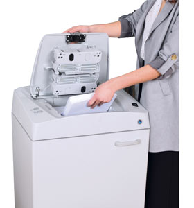The patented Energy Smart System turns on power saving stand-by mode in just 12 seconds. A 4-Digit Electronic Combination Lock is available, as an option, to protect your company information from the prying eyes of unauthorised persons while shredding.
