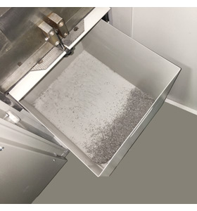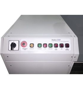 The Kobra SSD is equipped with an integrated internal 38 litres gallon state-of-the-art HEPA air filtration system to insure a clean, safe and comfortable operating environment. The air filtration system continuously transports air from different areas inside the machine including the feed port and filters the air through a HEPA filter to capture and contain any harmful materials used in the manufacturing of ICs.
