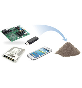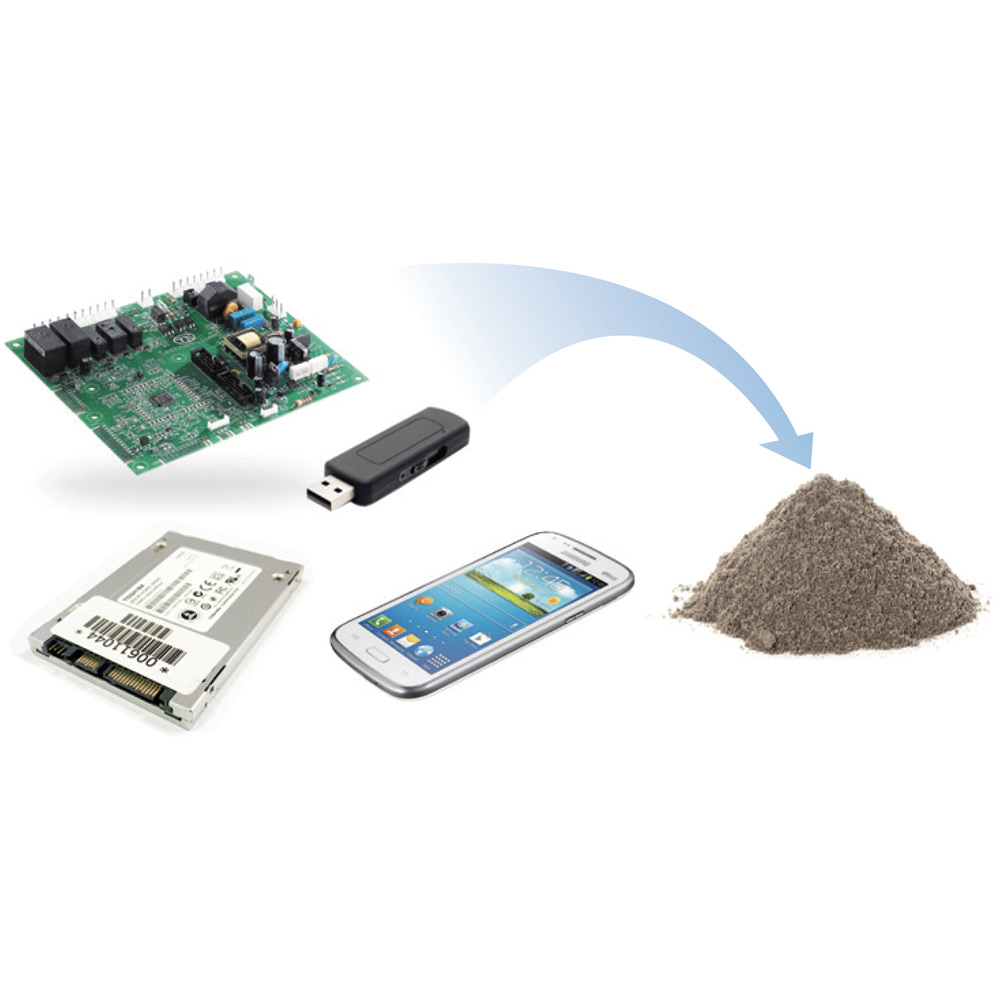 | Shreds | Solid State Drives, Smartphones, Memory sticks, USB memory devices, Pen drives, Tablets & iPads, Circuit boards, Credit cards and ID Cards with embedded electronic chip and/or magnetic media, CDs/DVDs, Flash memory IC chips, CPU chips with internal ROM and/or flash memory |