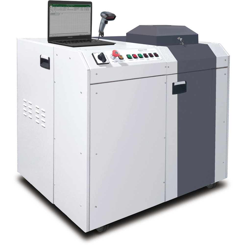 Optional extra - The Kobra LMS (Log Management System) (sold separately) offers a streamlined approach to recording and managing the serial numbers of devices destined for destruction via Kobra's SSD and HDD shredders. This system, designed to enhance efficiency in data management, can seamlessly integrate with a PC or MAC via a USB port and requires Microsoft Excel for operation.