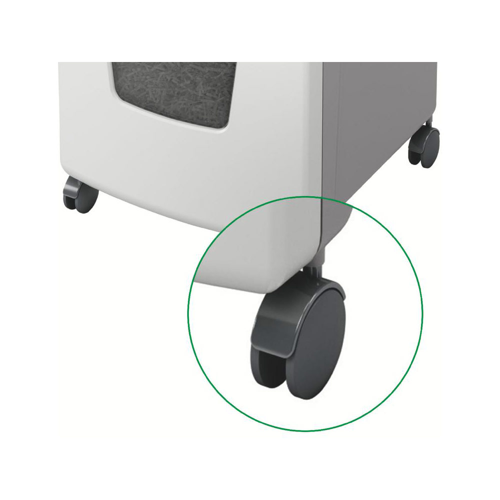 Also shreds credit cards, staples and paper clips; easy to move the machine around thanks to four high quality wheels