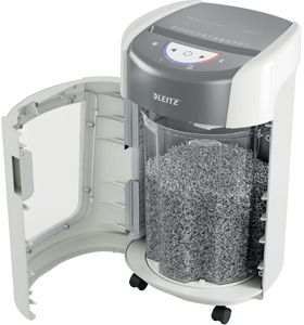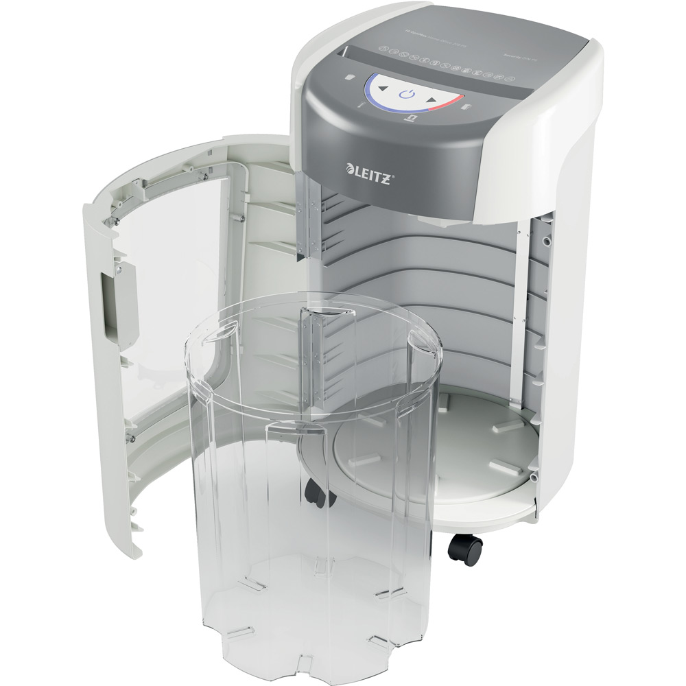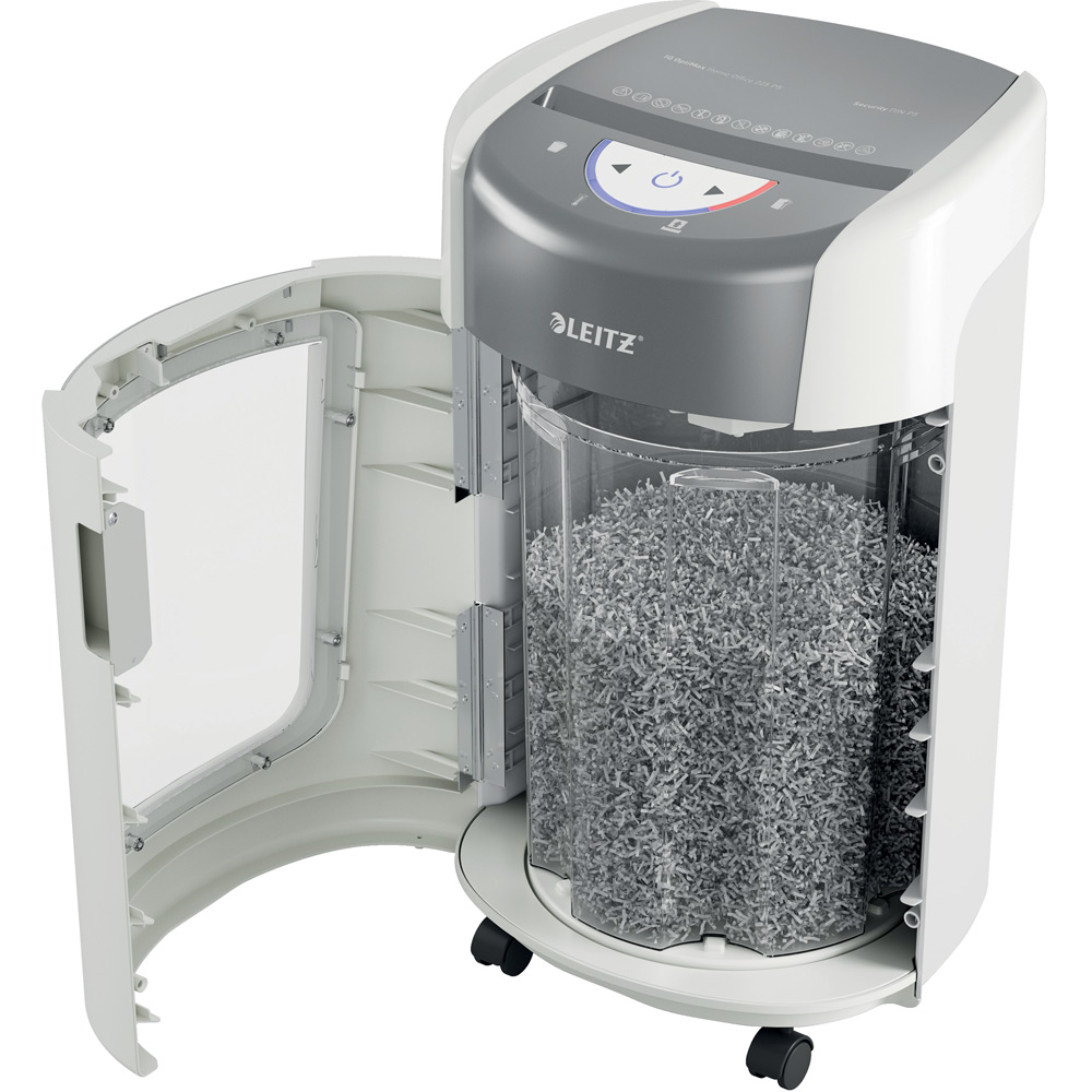 The OptiMax 225 is engineered for ultra-quiet performance, helping maintain a calm working environment, especially when used with Leitz oil papers regularly. Its sleek, space-saving circular design fits easily into corners or compact areas, and four high-quality castor wheels ensure smooth movement between locations. Built for both style and practicality, this shredder combines convenience, security, and performance in one device. It comes in white and includes a 2-year warranty as standard with the option to add an extra year's warranty by registering with Leitz.
