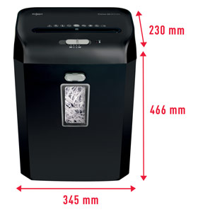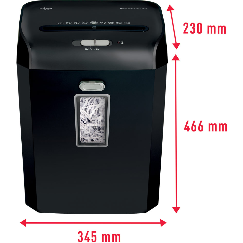 23L bin capacity (192x A4 sheets) with a lift off shredder head. Transparent bin window to see when full.