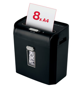| Sheet Capacity (80gsm) All specifications stated are to be used as guidance only and are subject to change at any time. Shredder sheet capacities for example are provided by manufacturers and are based on 70 gram paper, and are normally only achievable in ideal situations, so heavier duty paper will shred less sheets. In many cases the capacities quoted are theoretical as conditions vary and are dependent on operator usage, age and condition of machines, how regularly cutters are oiled, type and quality of paper etc. so realistic throughputs can be as low as half that of the theoretical capacities quoted. | 8 sheets |