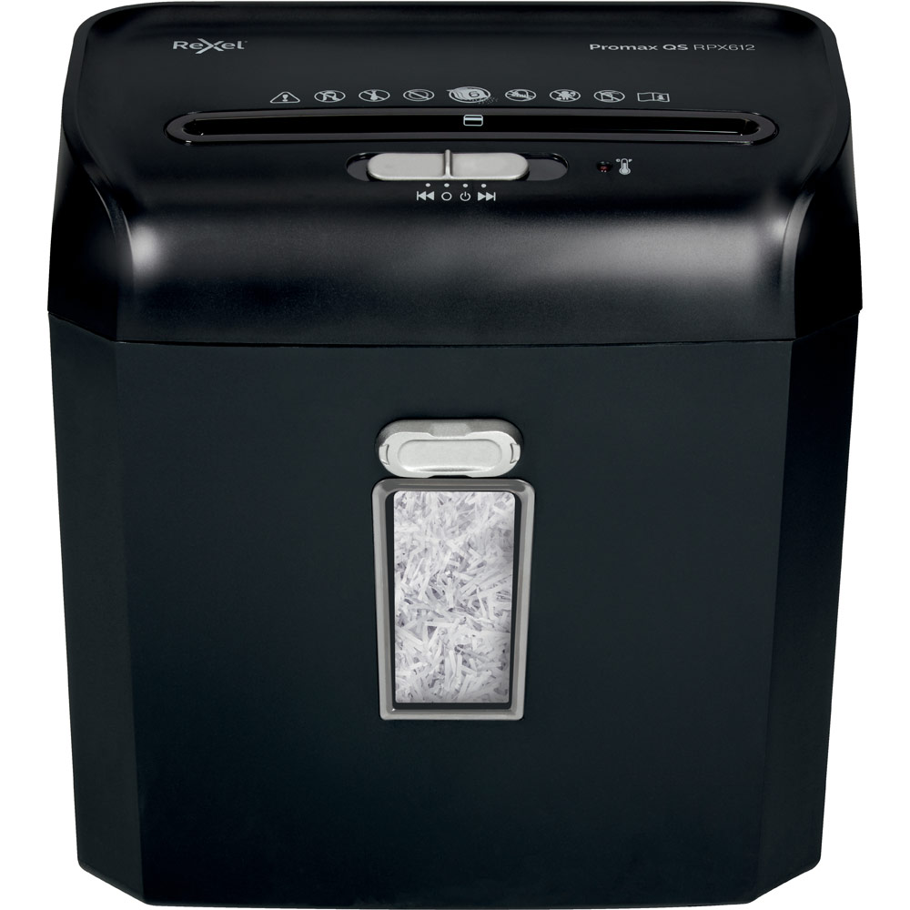 The ProMax QS RPX612 shreds up to 6 sheets (80 gsm) at a time in to P-4 (4x40mm) cross cut pieces, with a 12L bin which holds 132x A4 sheets.
