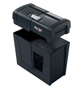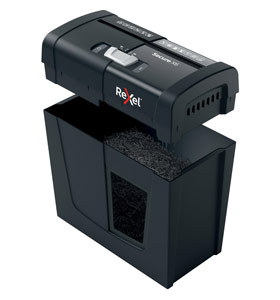 10L (100 A4 sheets) bin capacity with a lift off shredder head. Transparent bin window to see when full.