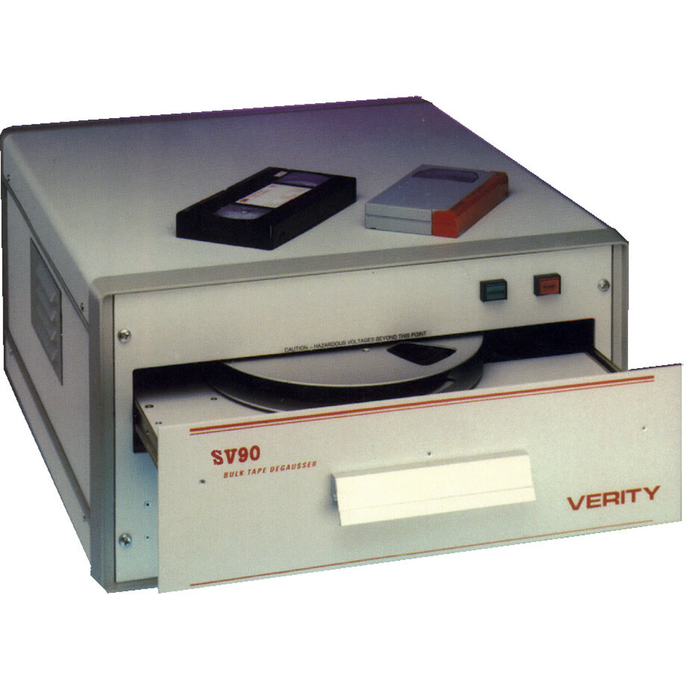 The Verity SV90 is a NATO and UK Government CESG approved fully automatic Reels and Cassettes Degausser able to perform erasure of high-density magnetic media achieved by applying a highly focused magnetic field created by Verity Systems exclusive multi-axis, 'pole tip' design. The tapes or cassettes are placed in the drawer compartment which has a high throughout average 6 second erase time per drive. The SV90 has an infrared remote control operation and is supplied with a FREE lifetime technical support.