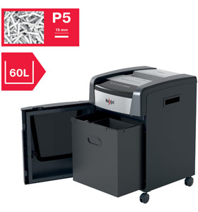 This micro-cut shredder is designed for moderate to heavy use with its high sheet capacity, large 60-litre bin capacity (approx. 700 sheets), and continuous run time.