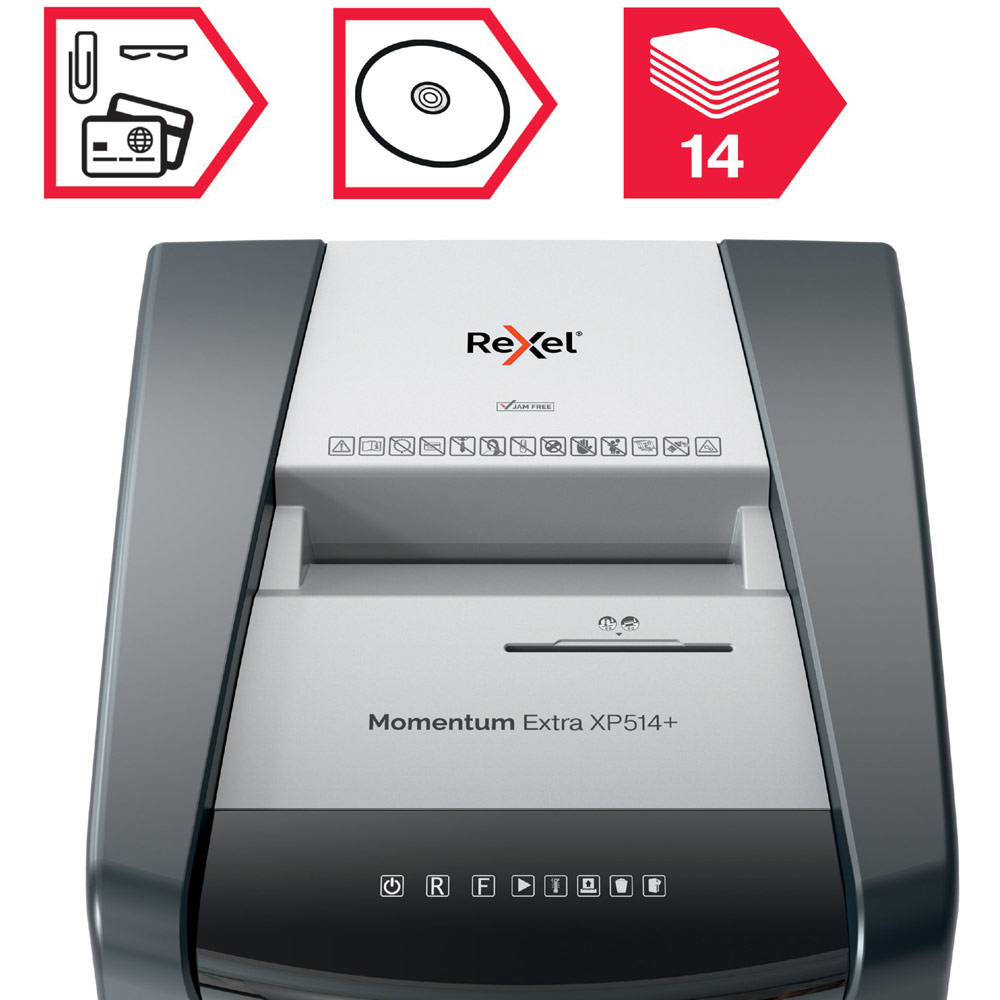 The Rexel Momentum Extra XP514+ Jam Free shredder is the ideal choice for destroying confidential documents in the office.